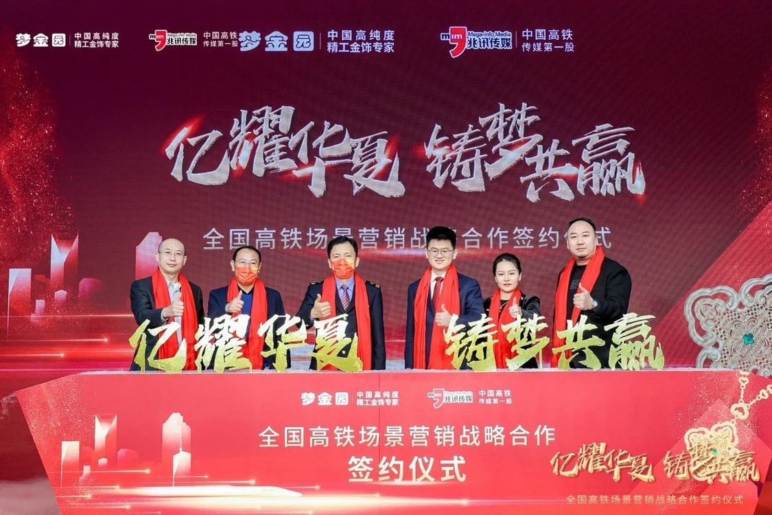 兆訊傳媒與夢金園的戰略合作關系的建立,既是夢金園積極煥新升級、以年輕化營銷撬動品牌可持續增長的重要舉措,也是兆訊傳媒發揮平臺優勢支持民族品牌發展,踐行“為品牌提供更直接的場景傳播”理念的精彩演繹。這是“民族品牌”力量與“中國速度”內核碰撞的繽紛呈現,也是對中國黃金珠寶行業和鐵路傳媒行業的雙向提振。