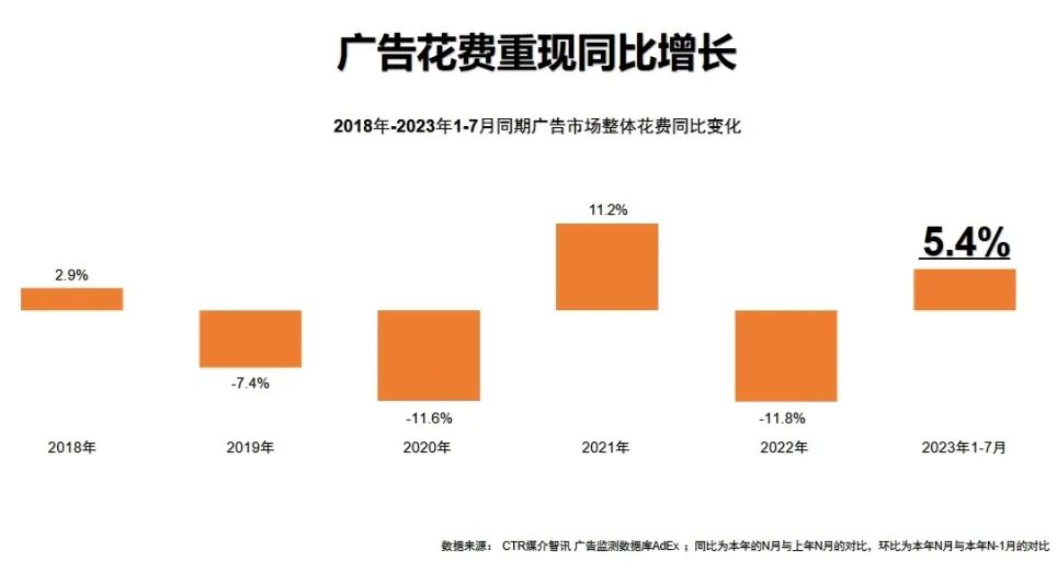 2023年1-7月廣告市場同比提升5.4%