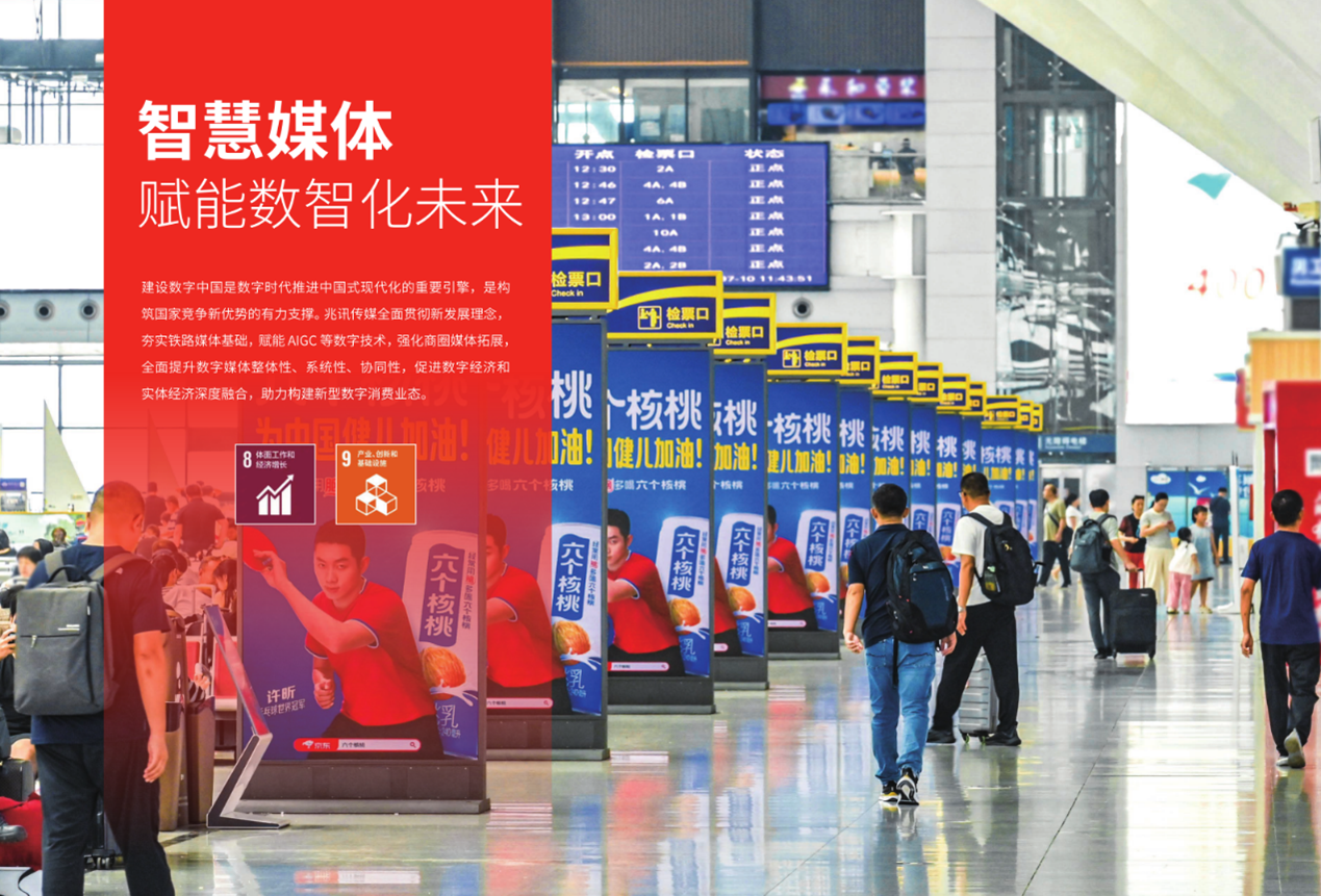 兆訊傳媒緊抓高鐵“新基建”發(fā)展機(jī)遇,不斷深化高鐵數(shù)字媒體資源的戰(zhàn)略布局,截至兆訊傳媒2024年報(bào)報(bào)告期末,公司已建成覆蓋全國(guó)30個(gè)省級(jí)行政區(qū),年觸達(dá)客流量逾20億人次的自有高鐵數(shù)字媒體網(wǎng)絡(luò)。依托“八縱八橫”高鐵網(wǎng),兆訊媒體資源全面覆蓋京津冀、長(zhǎng)三角、珠三角等多個(gè)經(jīng)濟(jì)發(fā)達(dá)區(qū)域,串聯(lián)國(guó)內(nèi)城市經(jīng)濟(jì)交流圈。以高鐵站點(diǎn)構(gòu)建區(qū)域傳播陣地,打通各級(jí)城市縣域傳播壁壘,于車(chē)站黃金候車(chē)區(qū)域觸達(dá)海量出行人群。成為連接品牌價(jià)值與消費(fèi)者認(rèn)知的重要橋梁,深刻影響著主流人群的消費(fèi)選擇,實(shí)現(xiàn)促進(jìn)區(qū)域經(jīng)濟(jì)增長(zhǎng)與城市文化傳播方面的雙向賦能。