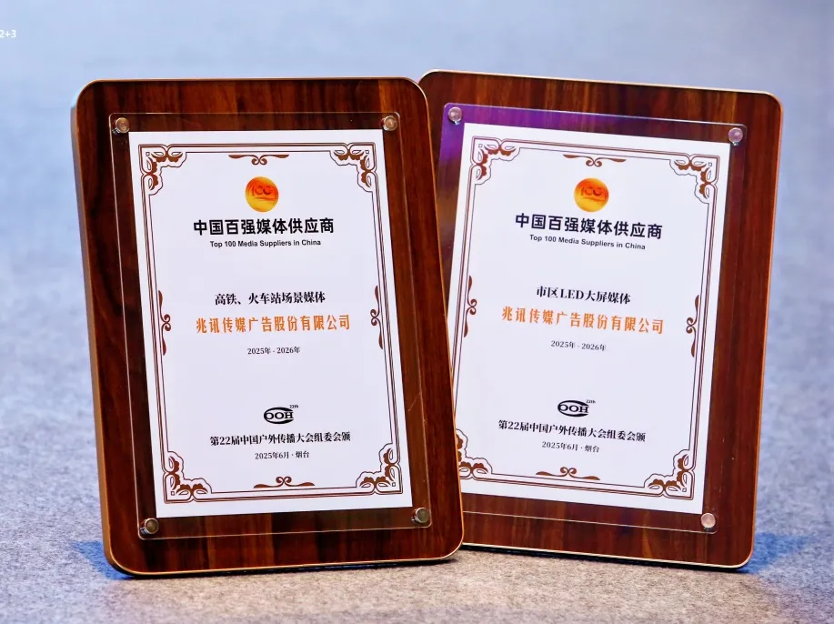 憑借高鐵和商圈兩大媒體資源硬核實力,兆訊傳媒榮登2024-2025年度第十屆“中國百強媒體供應商”、“中國杰出戶外媒體公司”榜單,彰顯出兆訊在高鐵數字營銷領域的超一流水準和聚合媒體商業價值。